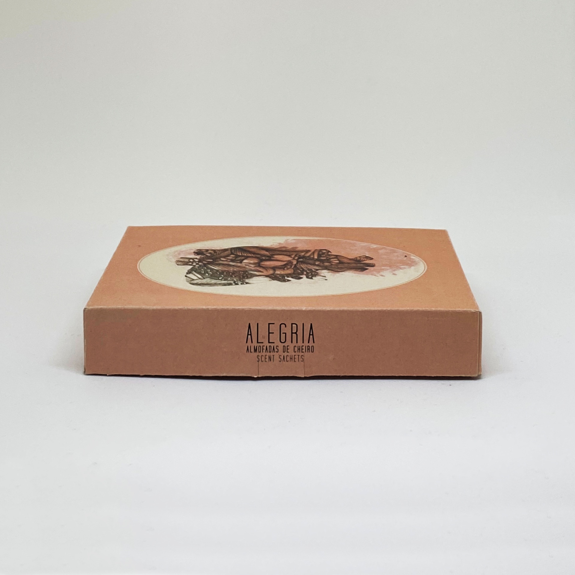 Caixa composta por duas almofadas de cheiro, estampadas com o "Coração do lar".