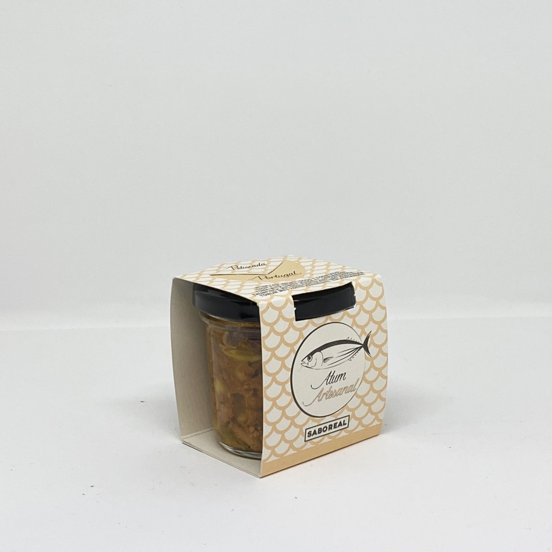 Ingredientes: Atum (48%), Batata doce (14%), Cebola, Tomate, Sumo de Limão, Coentros (5%), Azeite Virgem, Sal, Agar-Agar, Pimenta preta.