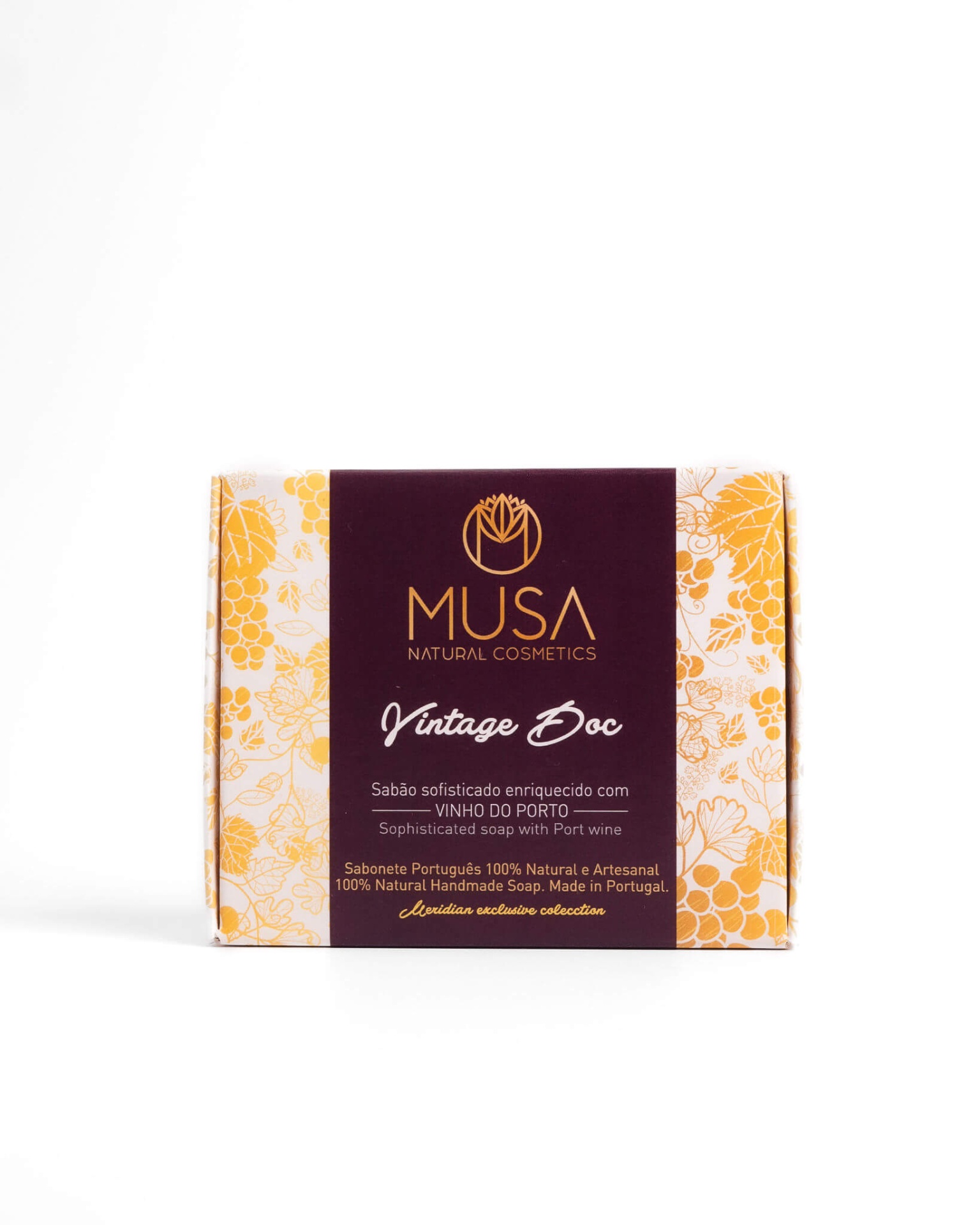 Sabonete hidratante para lavagem. Aroma floral muito característico deste sabão. Contém Vinho do Porto como Ingrediente principal. Estudos defendem propriedades anti-inflamatórias, antimicrobianas e, principalmente, anti-oxidantes. O vinho do Porto contém “propriedades promissoras no combate ao envelhecimento cutâneo e doenças de pele” (Baxter, 2007). Contém vitamina C e vitamina E. “O resveratrol tem efeitos quimiopreventivos e terapêuticos na pele, conferindo protecção contra radiação UV e stress oxidativo no combate ao envelhecimento cutâneo” (Ndiaye, 2011).